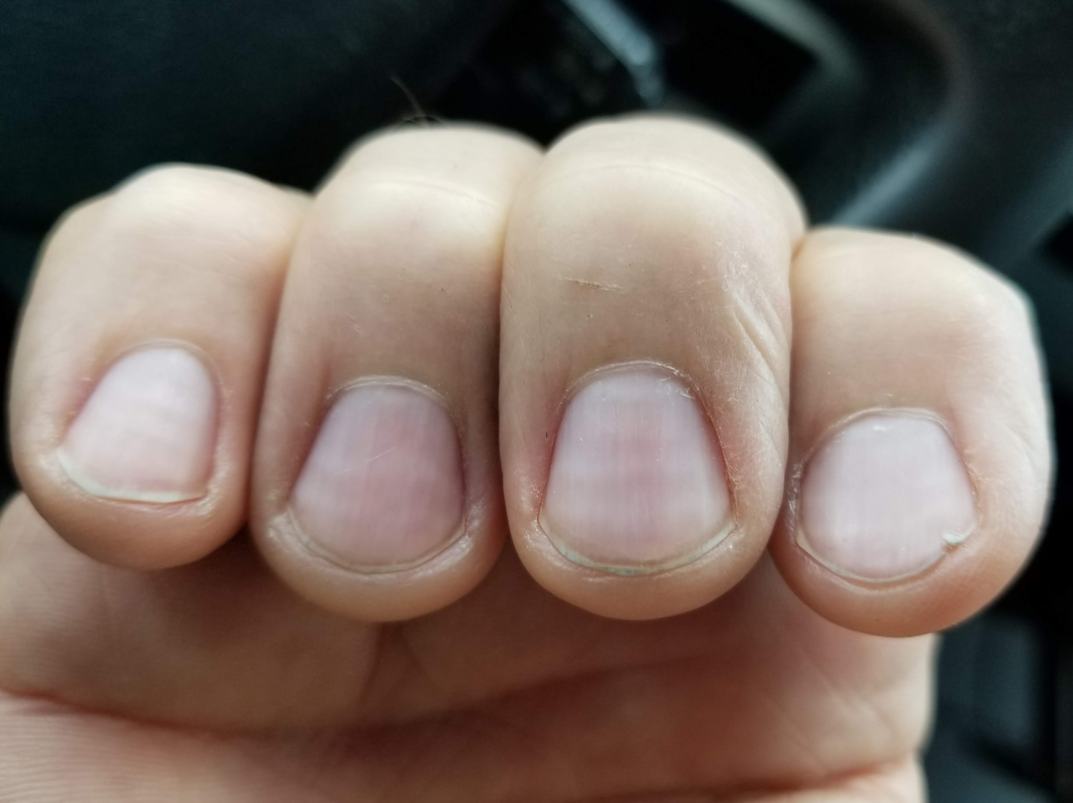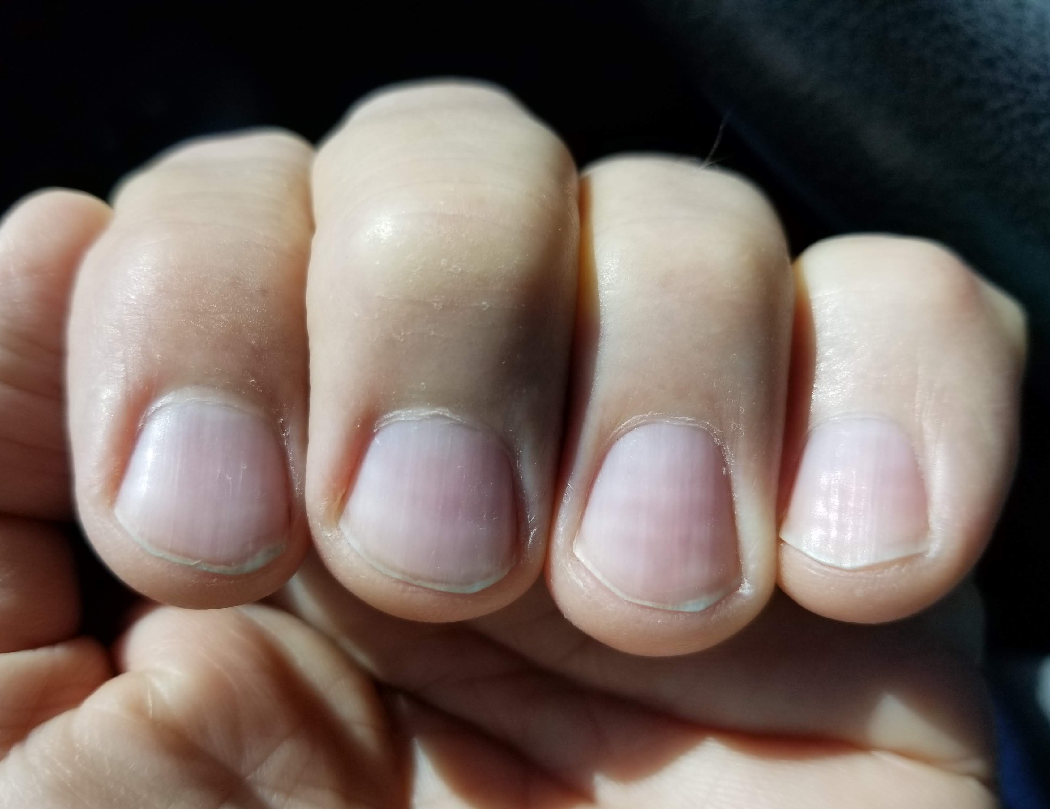 Chemo trashes skin cells so that’s still looking slightly affected. Then I noticed my nails are regrowing…incrementally. I’m assuming these peculiar horizontal ridges are where they stopped growing and attempted to start again, four times.